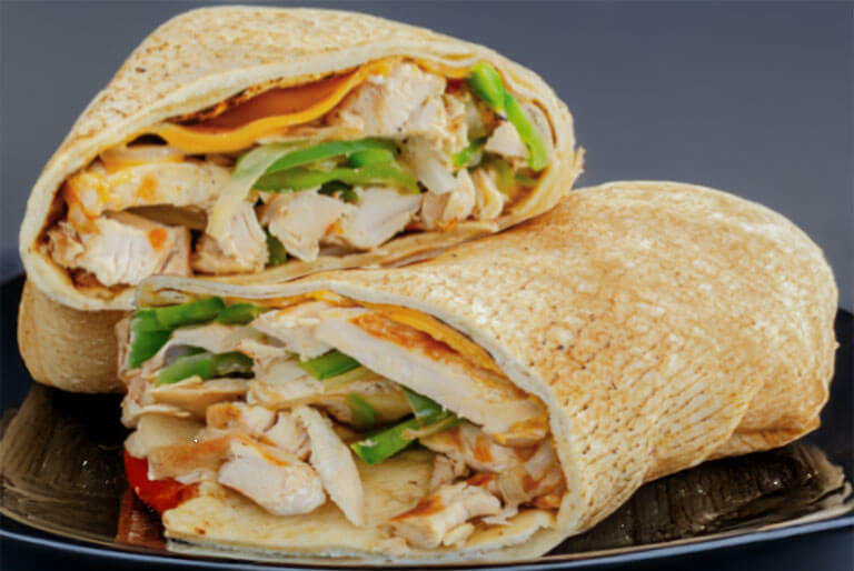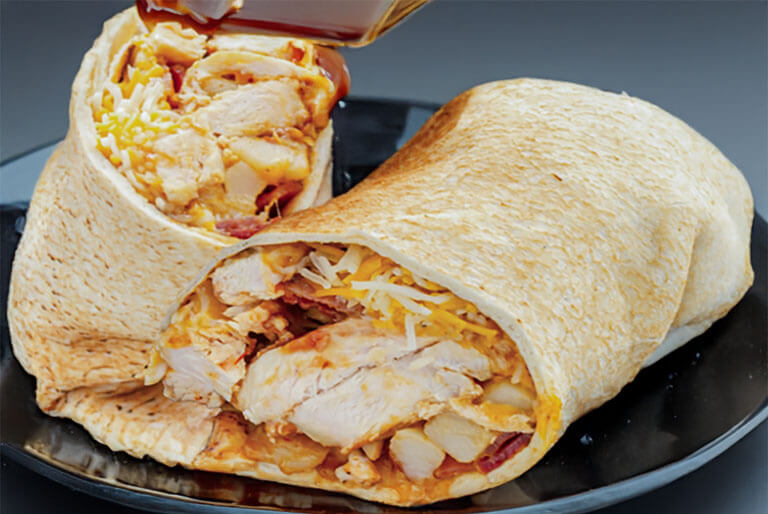 Grilled chicken, lettuce, tomatoes, melted pepperjack cheese, and our homemade buttermilk ranch dressing wrapped in a flour tortilla.