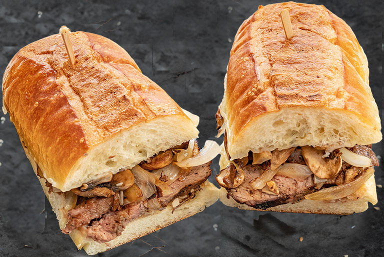 Thinly sliced, marinated flank steak, grilled to order and served on a toasted sub roll. Served with a side of our secret marinade for dipping.