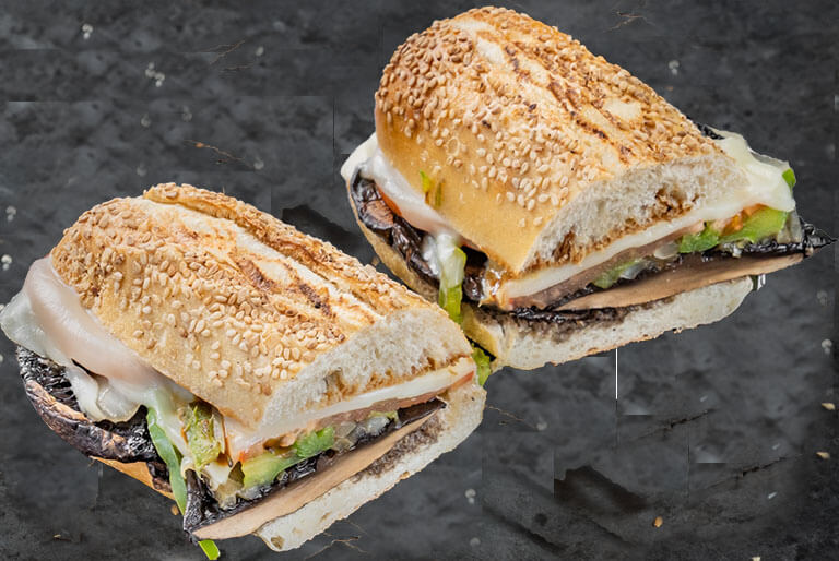 Hand breaded sliced eggplant, deep fried and topped with melted fresh mozzarella. served on Bakery fresh toated foccacia bread with roasted red peppers and pesto.