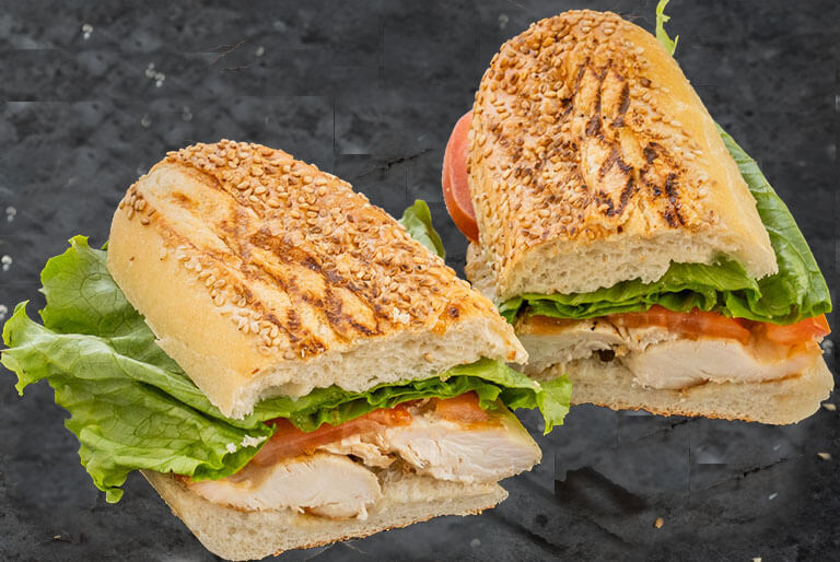 Marinated grilled chicken, melted fresh mozzarella, sliced red onion and pesto sauce served on bakery fresh pressed foccacia bread.
