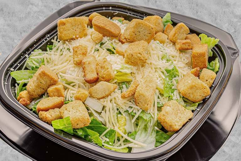 Grated parmesan cheese and seasoned croutons served over a bed of freshly chopped romaine served with a side fo Caesar dressing.