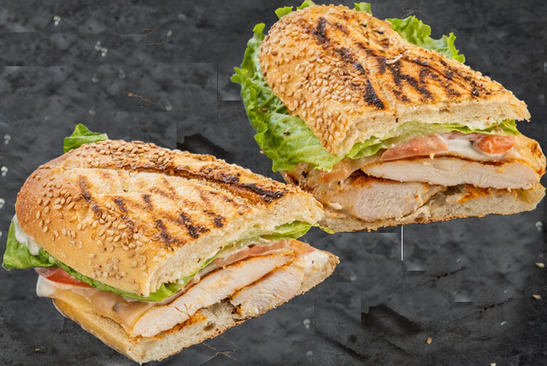 Marinated grilled chicken, melted fresh mozzarella, sliced red onion and pesto sauce served on bakery fresh pressed foccacia bread.