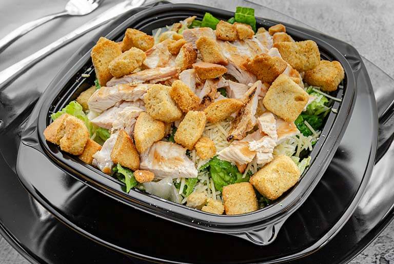 Start with a bed or romaine lettuce and choose your protein, Cheese, up to four vegetables and a dressing