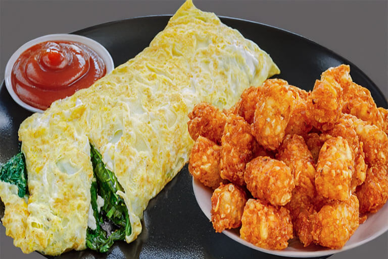 2 egg omelet, cajun home fries, and melted cheddar 'n jack cheese rolled in a flour tortilla.